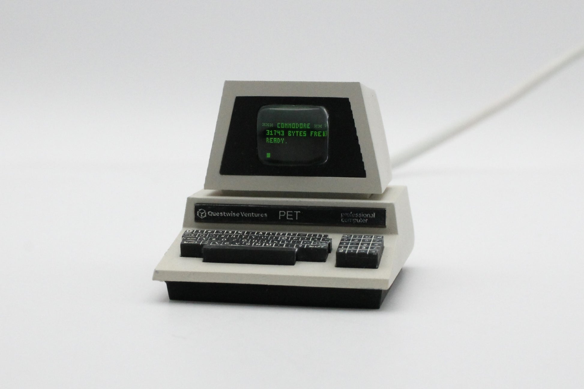 Encased in a resin 3D-printed body that captures the unmistakable charm of the late-1970s PET design, the Mini PET Prompt delivers a micro-dose of nostalgia straight to your desk or shelf. The keys on its miniature keyboard have been hand-painted with characters, intentionally worn and faded to evoke decades of use, adding an authentic retro-computing vibe.