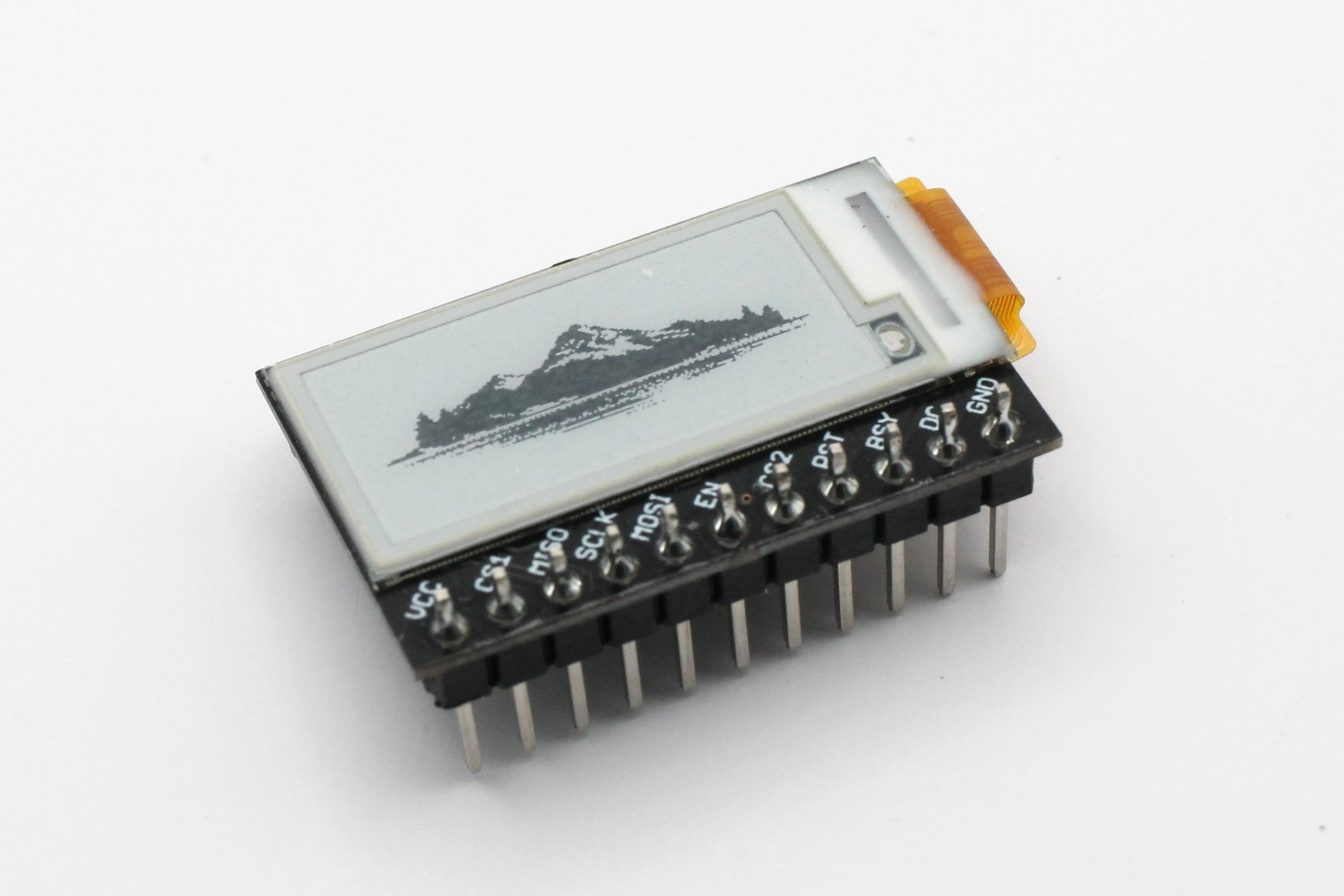 This eInk breakout board has an 8KB SRAM chip that shares the SPI port with the eInk display. Thanks to the SRAM chip, you don't need to worry about the frame buffer not fitting into the microcontroller memory. This allows this eInk breakout board to be used even for inexpensive MCU's such as the ATMEGA328. The memory transfer between the SRAM and the eInk display is all handled by open source Arduino libraries (see below).
